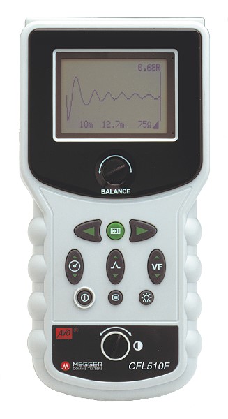 Megger CFL510F Hand-held Time Domain Reflectometer can be used on any cable consisting of at least two insulated metallic elements,  one of which may be the sheath or shield of the cable. The CFL510F has internal matching networks to allow testing of 25-, 50-, 75- and 100-ohm cables. (These correspond to power, cellular, CATV, and telephone cable).